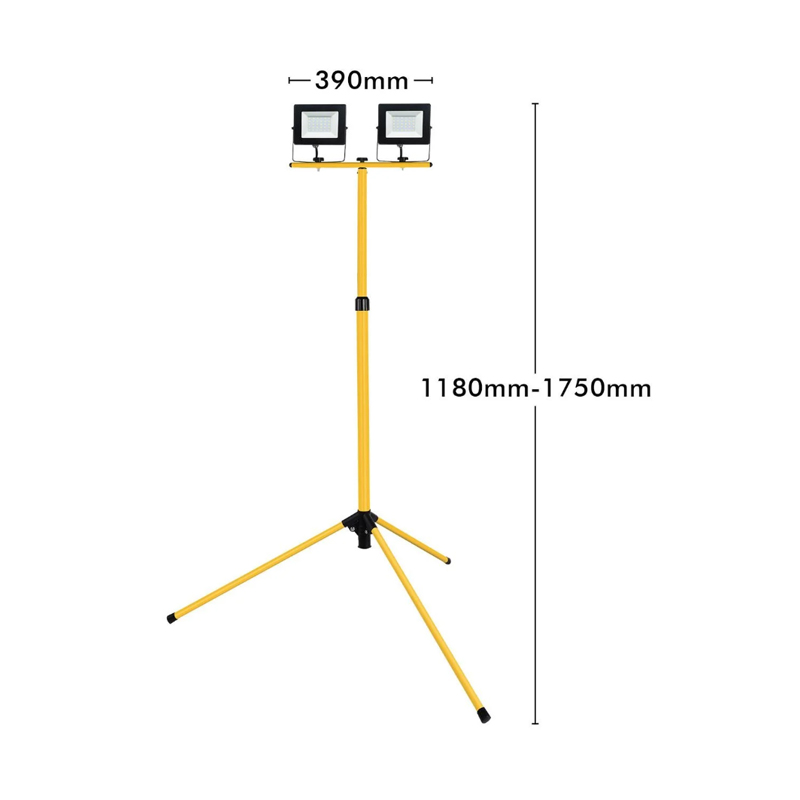 Featuring two high-performance 20W LED heads, this energy-efficient worklight offers wide beam coverage and long-lasting performance. The adjustable tripod stand allows for easy height and angle positioning, making it ideal for any task that requires hands-free illumination.